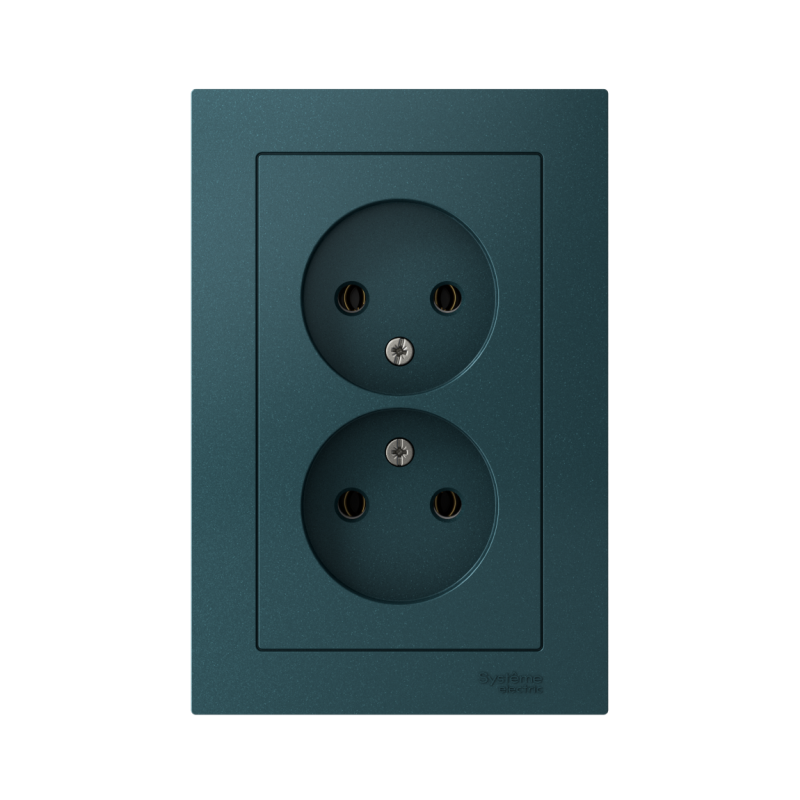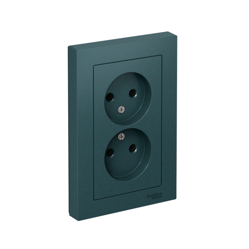 Розетка двойная в сборе Systeme Electric (ранее Schneider Electric) серии AtlasDesign в цвете изумруд без заземления и без шторок подходит для сетей 250 В, на ток 16 А. Лицевые детали из качественного ABS-пластика, устойчивого к царапинам и УФ-излучению. Двойная розетка позволяет подключить два устройства в одном месте. Изделие поставляется в комплекте с рамкой того же цвета. Усиленные прямые монтажные лапки для лучшей фиксации механизма в монтажной коробке.