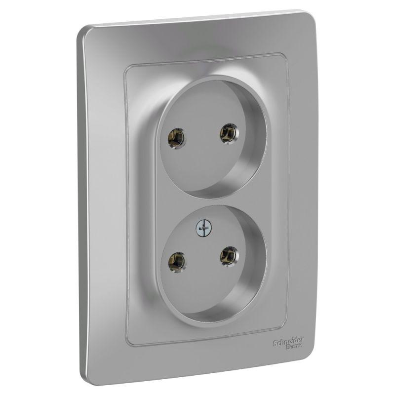 Розетка Systeme Electric (ранее Schneider Electric) BLANCA (алюминий, скрытой установки) двухместная, без заземления и шторок предназначена для сетей до 250В, на ток до 16А. Двухместная розетка позволяет подключить два устройства в одном месте. Она изготовлена из ABS-пластика, проста в установке и удобна в применении.