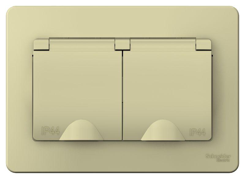 Розетка 2-м СП Blanca 16А IP44 250В с заземл. защ. шторки с крышкой беж. SE BLNRS441127