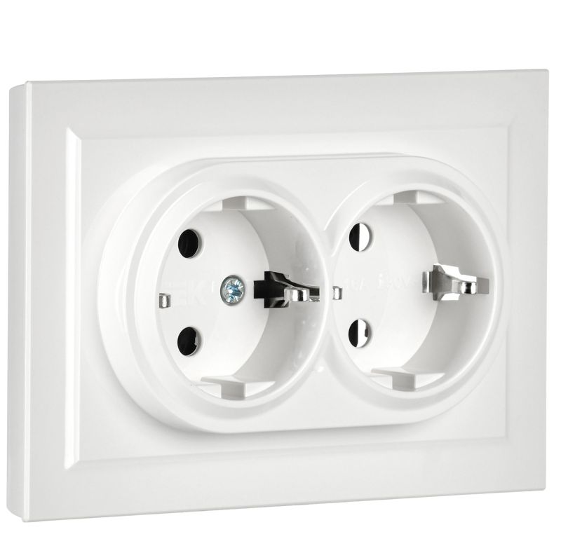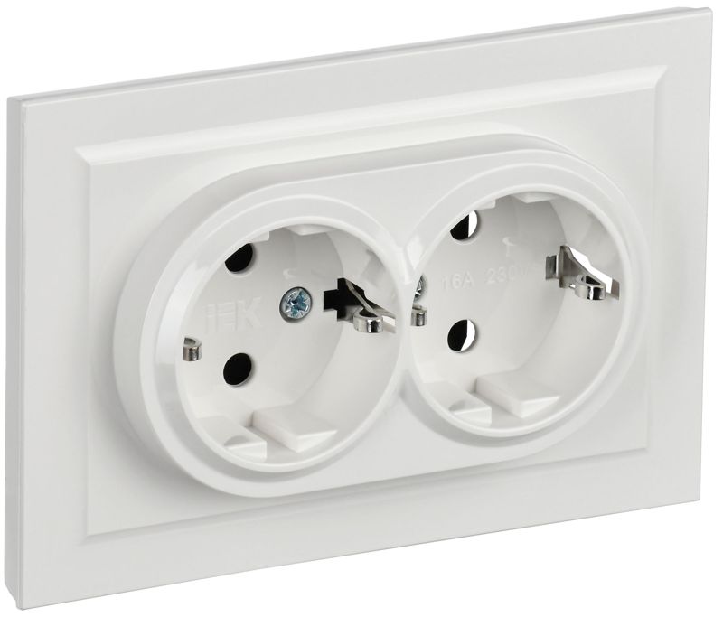 Розетка 2-м СП BRITE РС12-3-БрБ 16А в сборе с заземл. без защ. шторок бел. IEK BR-R21-16-K01-F