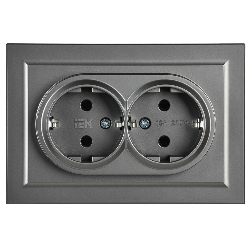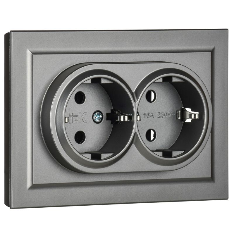 Розетка 2-м СП BRITE РС12-3-БрС 16А в сборе с заземл. без защ. шторок сталь IEK BR-R21-16-K46-F