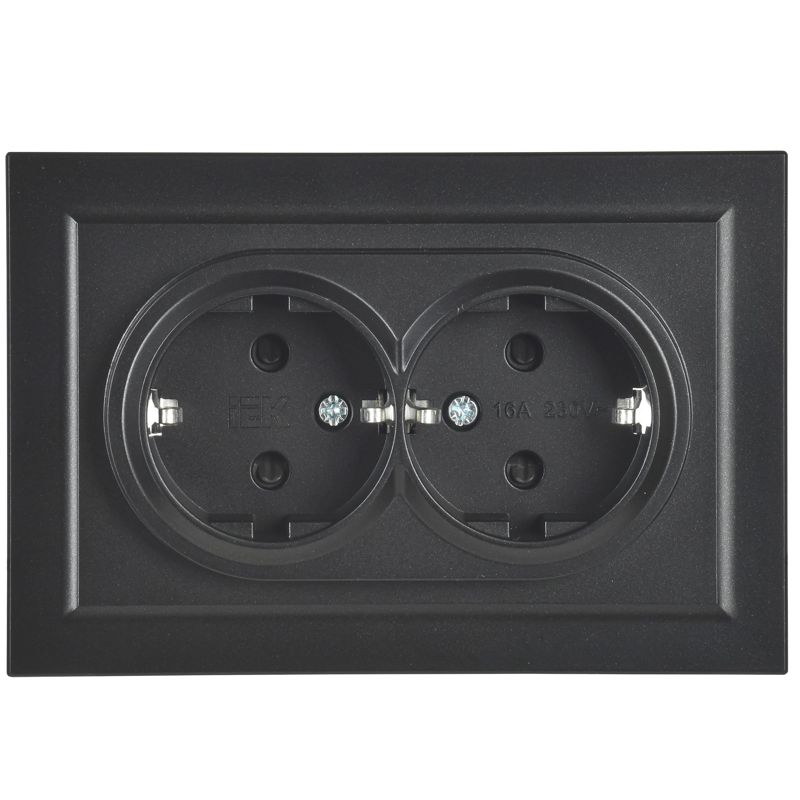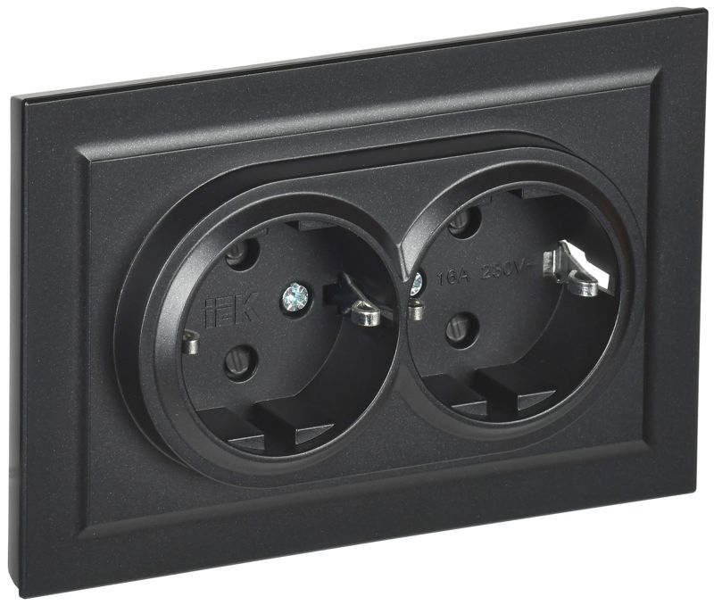 Розетка 2-м СП BRITE РСш12-3-БрЧ 16А в сборе с заземл. защ. шторки черн. IEK BR-R24-16-K02-F
