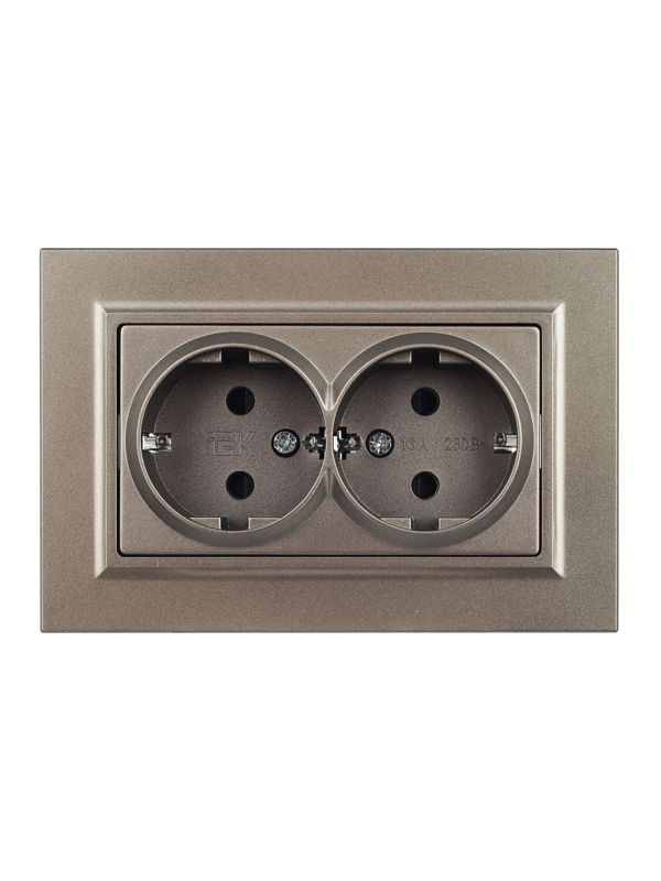 Розетка 2-м СП BRITE РСш12-3-БрШ 16А в сборе с заземл. защ. шторки шампань IEK BR-R24-16-K37-F