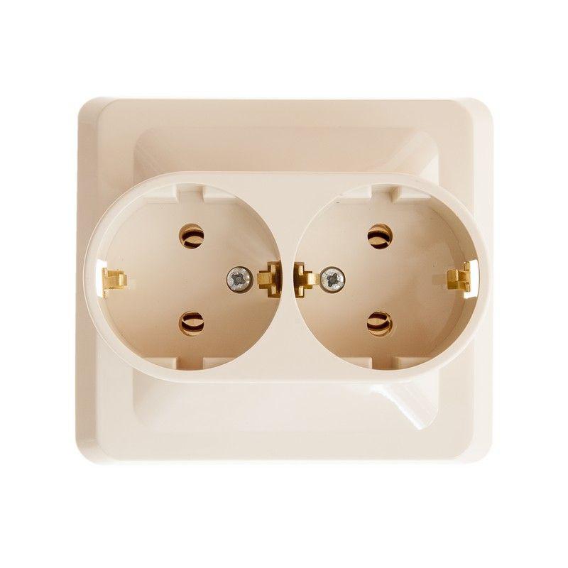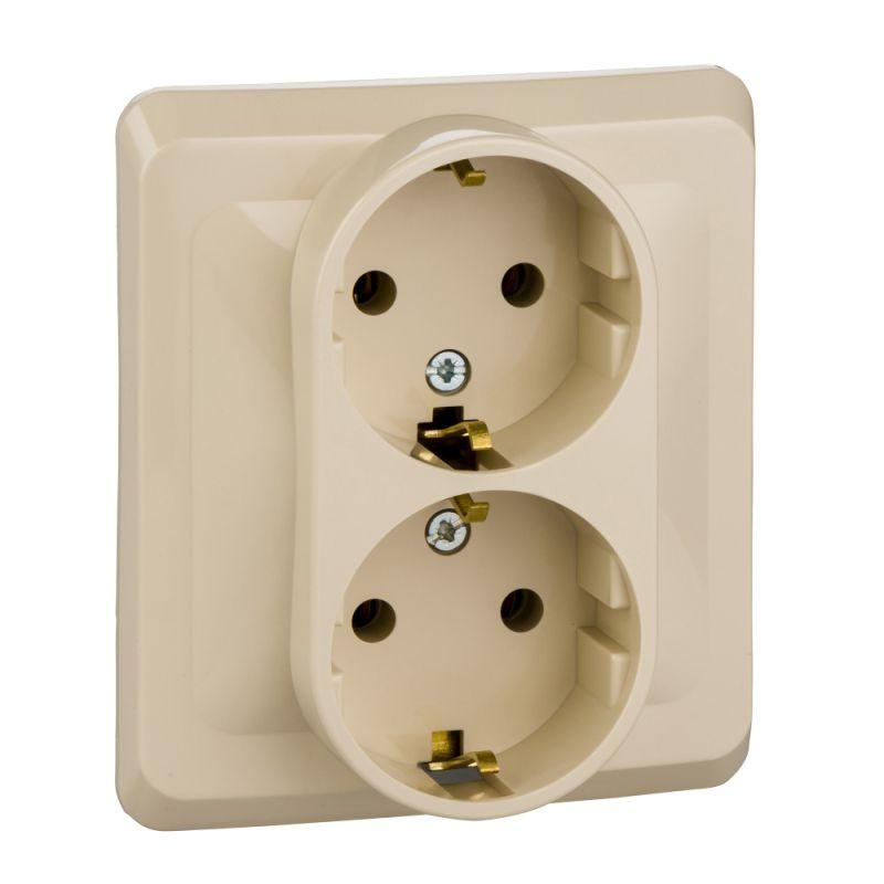 Розетка 2-м СП Этюд 16А IP20 250В с заземл. без защ. шторок крем. SE PC16-007K