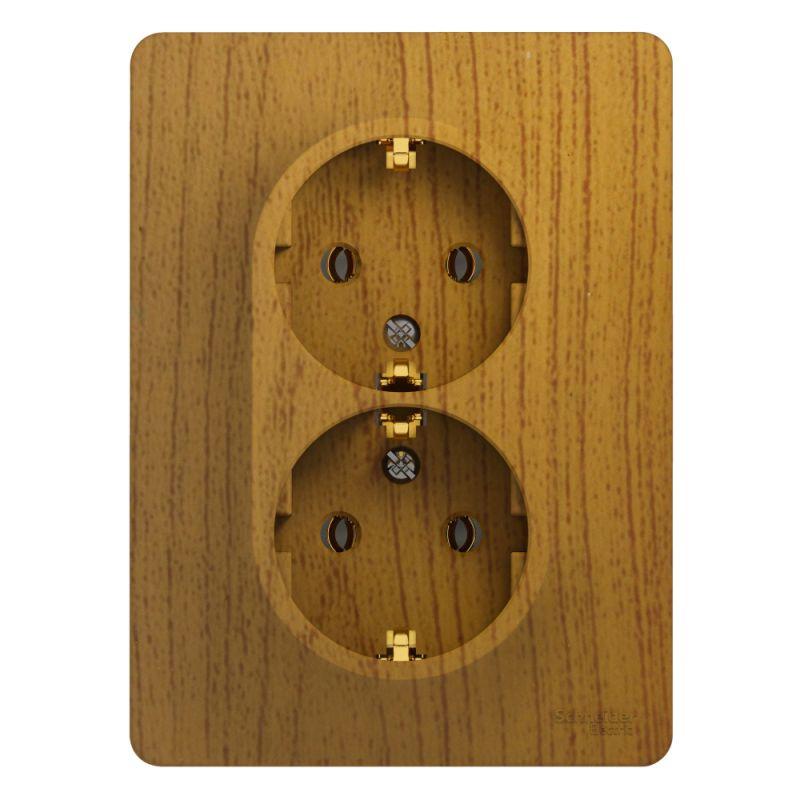 Розетка двойная Systeme Electric (ранее Schneider Electric) серии Glossa (в сборе, цвет дерево дуб) с заземлением, без шторок подходит для сетей 250 В, на ток 16 А. Заземляющий контакт обеспечивает дополнительную защиту от удара электрическим током. При наличии заземления электрический потенциал уходит в землю, защищая человека. Выполнен из материала PС+ASA, стойкого к УФ-излучению и появлению царапин. Двойная розетка позволяет подключить два устройства в одном месте.