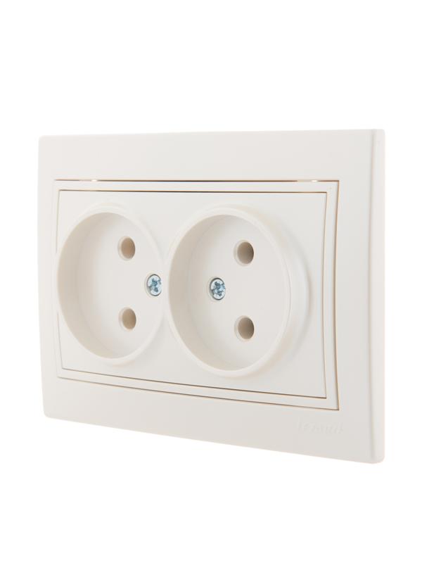 Розетка 2-м СП Мира 16А IP20 без заземл. керам. жемчуж. бел. перламутр LEZARD 701-3030-128 представляет собой электроустановочный механизм двухместной розетки.