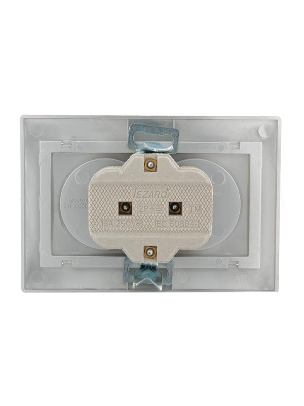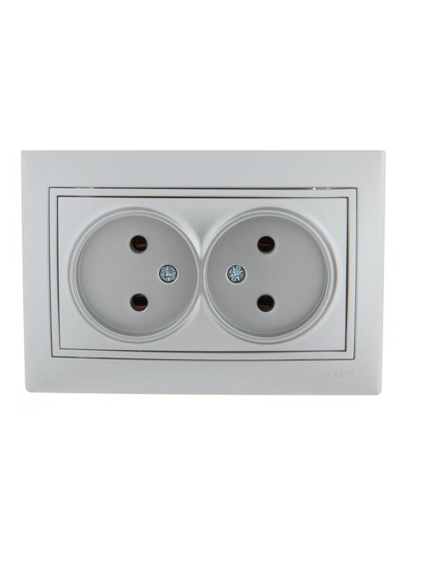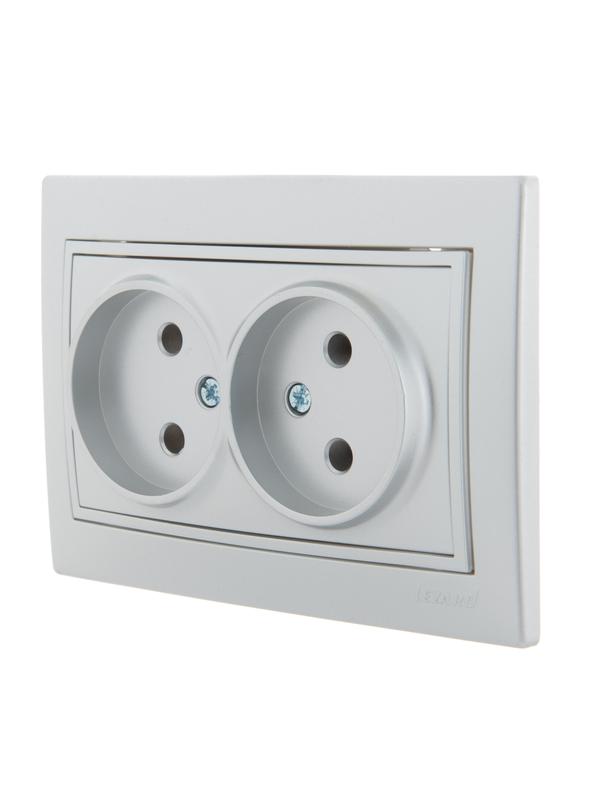 Розетка 2-м СП Mira 16А IP20 без заземл. со вставкой керамика сер. метал. LEZARD 701-1010-128