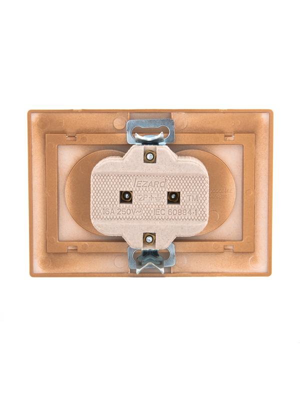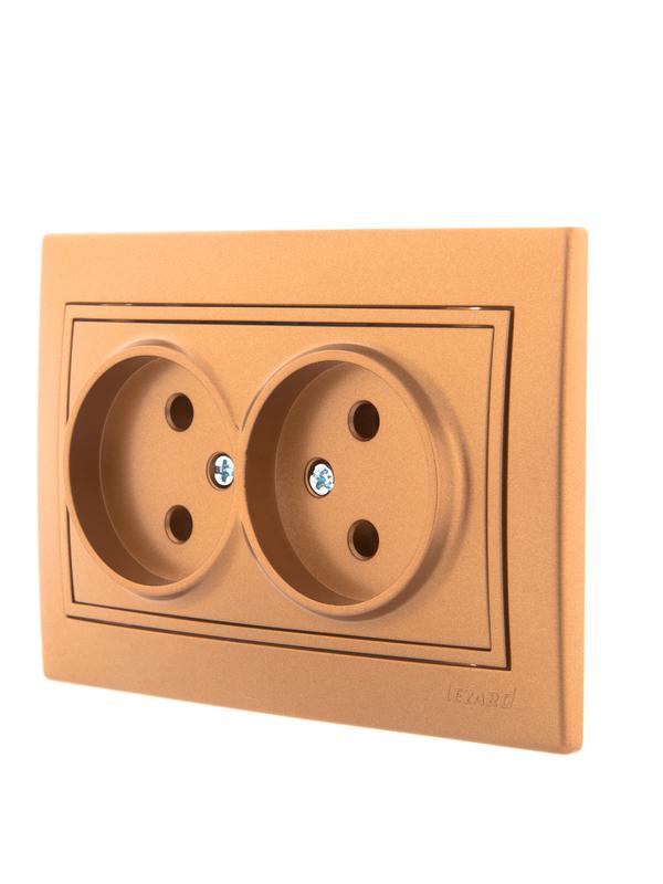 Розетка 2-м СП Mira 16А IP20 без заземл. со вставкой керамика зол. метал. LEZARD 701-1313-128 -