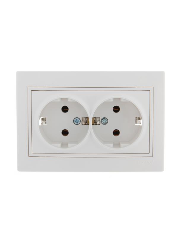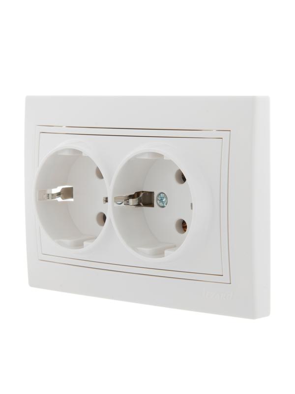 Розетка 2-м СП Mira 16А IP20 с заземл. с бел. вставкой керамика бел. LEZARD 701-0202-127