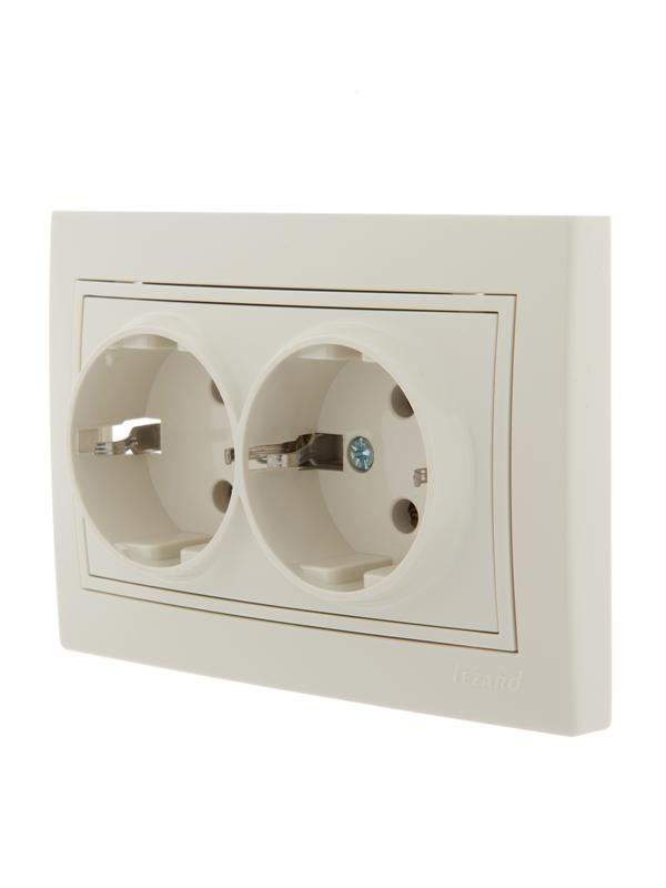Розетка 2-м СП Mira 16А IP20 с заземл. со вставкой керамика крем. LEZARD 701-0303-127 -
