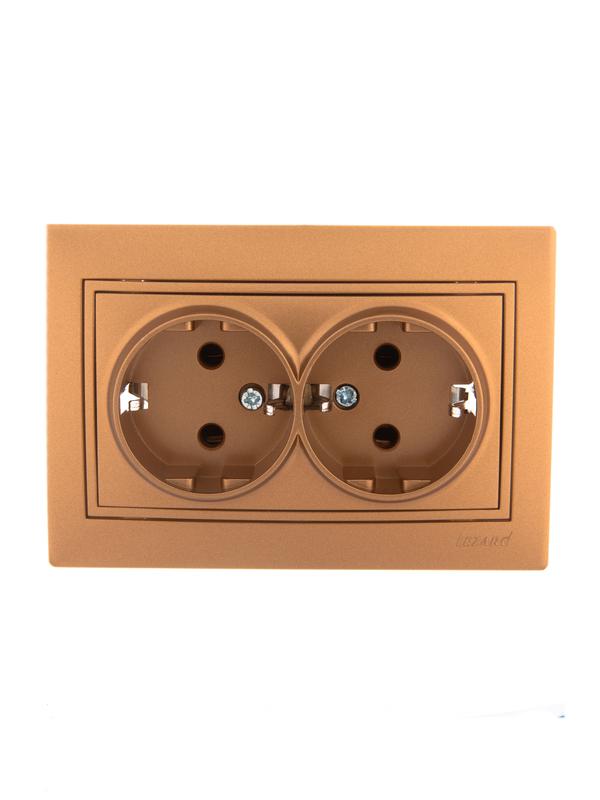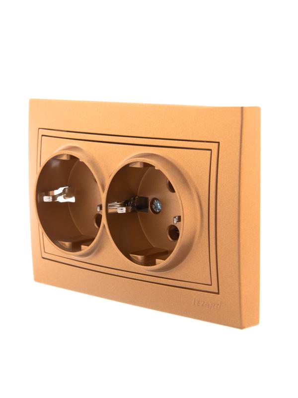 Розетка 2-м СП Mira 16А IP20 с заземл. со вставкой керамика зол. метал. LEZARD 701-1313-127 -