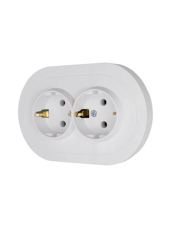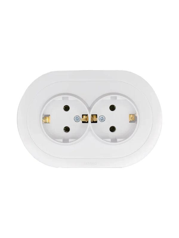 Розетка 2-м СП OSEN с заземл. ПБТ круглая механизм бел. LEZARD 744-0200-127B -