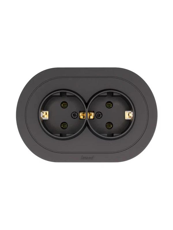 Розетка 2-м СП OSEN с заземл. ПБТ круглая механизм черн. бархат LEZARD 744-4200-127B