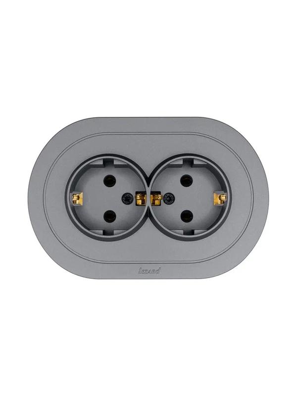 Розетка 2-м СП OSEN с заземл. ПБТ круглая механизм сер. матов. LEZARD 744-7400-127B