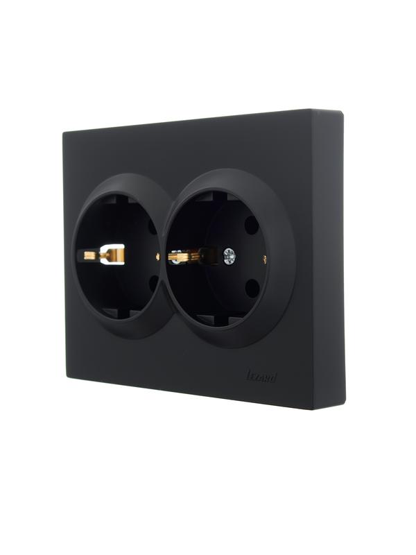 Розетка 2-м СП VESNA с заземл. ПБТ черн. бархат LEZARD 742-4200-127B -