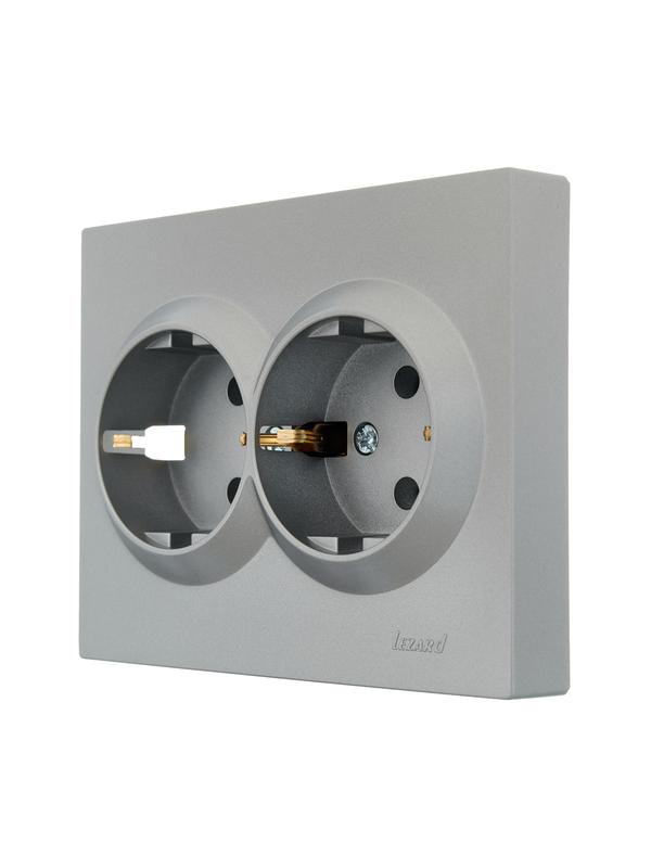 Розетка 2-м СП VESNA с заземл. ПБТ платина LEZARD 742-3500-127B -