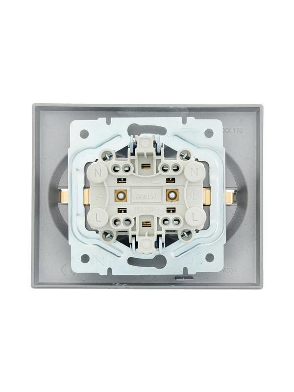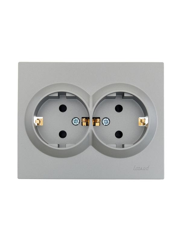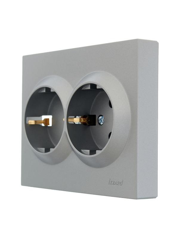 Розетка 2-м СП VESNA с заземл. со шторками ПБТ платина LEZARD 742-3500-178B -