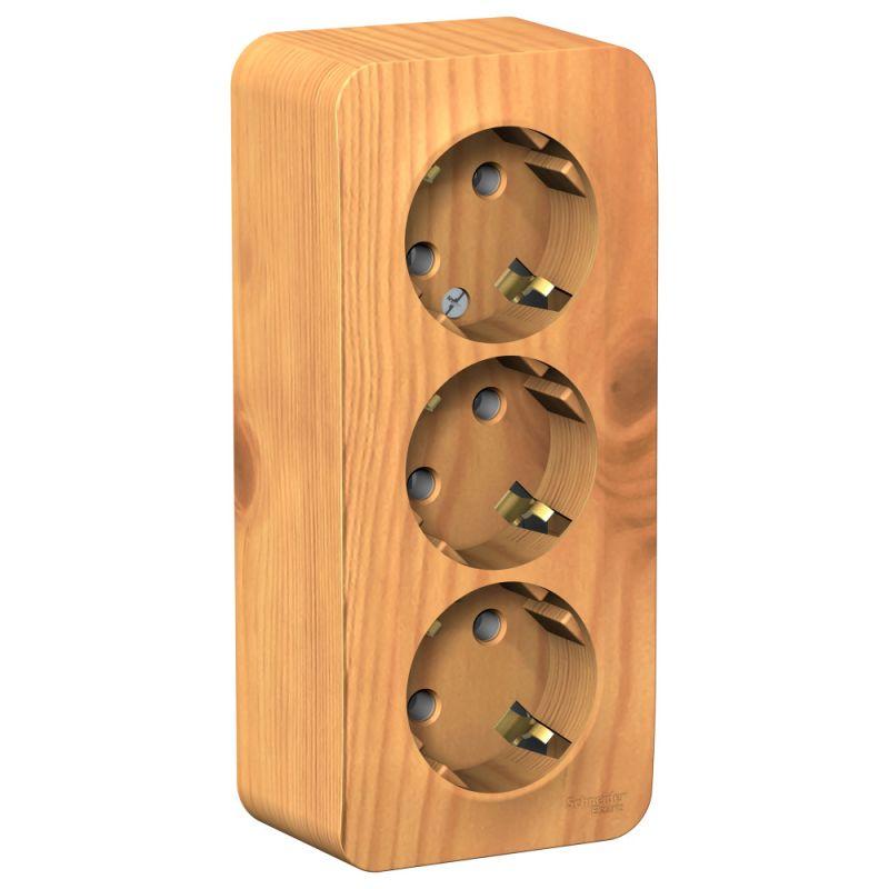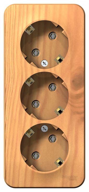 Розетка Systeme Electric (ранее Schneider Electric) BLANCA (ясень, открытой установки) трехместная, без шторок, с заземлением и изолирующей пластиной предназначена для сетей до 250В, на ток до 16А. Трехместная розетка позволяет подключить три устройства в одном месте. Заземление обеспечивает безопасность при косвенном прикосновении. Изделия цвета Ясень обладают уникальным рисунком, напоминающим древесный сруб. Она изготовлена из ABS-пластика, проста в установке и удобна в применении.