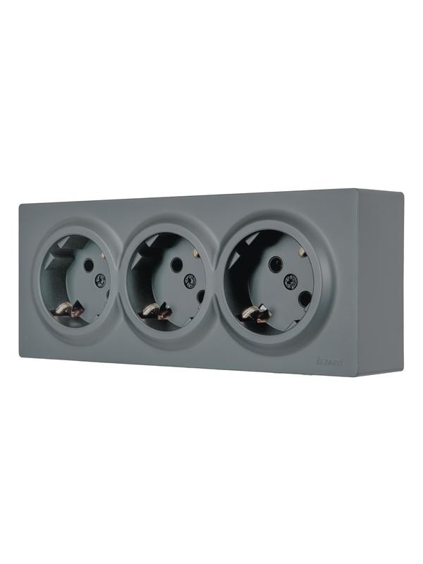Розетка 3-м ОП LETO с заземл. закрытый корпус ПБТ графит LEZARD 752-3400-127BUP