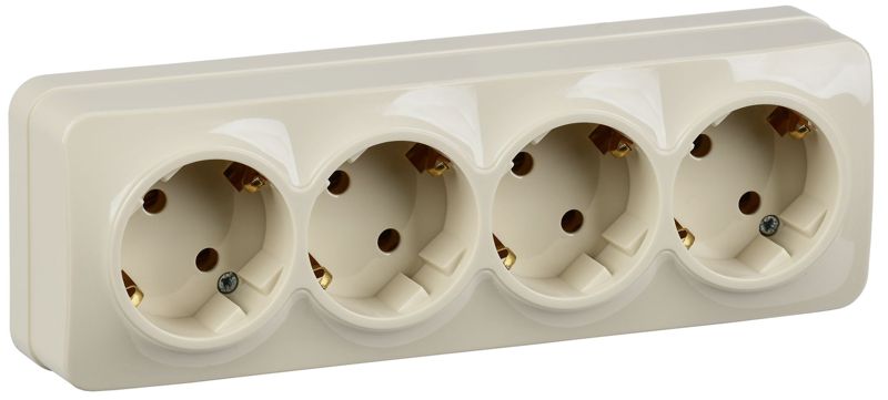 Розетка 4-м ОП GLORY РС24-3-ХК 16А с заземл. крем. IEK ERH41-K33-16