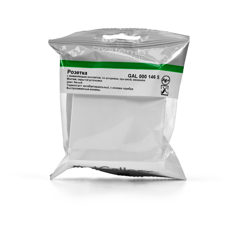 Механизм с быстрозажимными клеммами Systeme Electric серии ArtGallery в цвете белый розетки одинарной с заземлением, шторками и крышкой подходит для сетей 250 В, на ток 16 А. Пластик с ионами серебра в белом цвете обеспечивает антибактериальный эффект. Новая технология быстрозажимных клемм позволяет ускорить монтаж на 25%. Лицевые детали из качественного ABS-пластика, устойчивого к царапинам и УФ-излучению. Лучший промышленный дизайн (по итогам премии МИНПРОМТОРГ 2023).