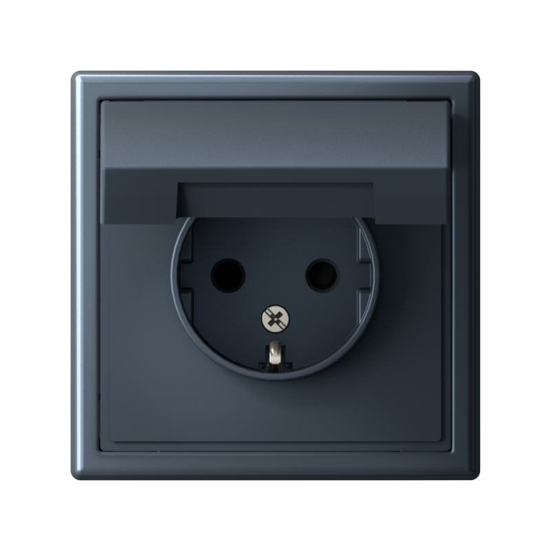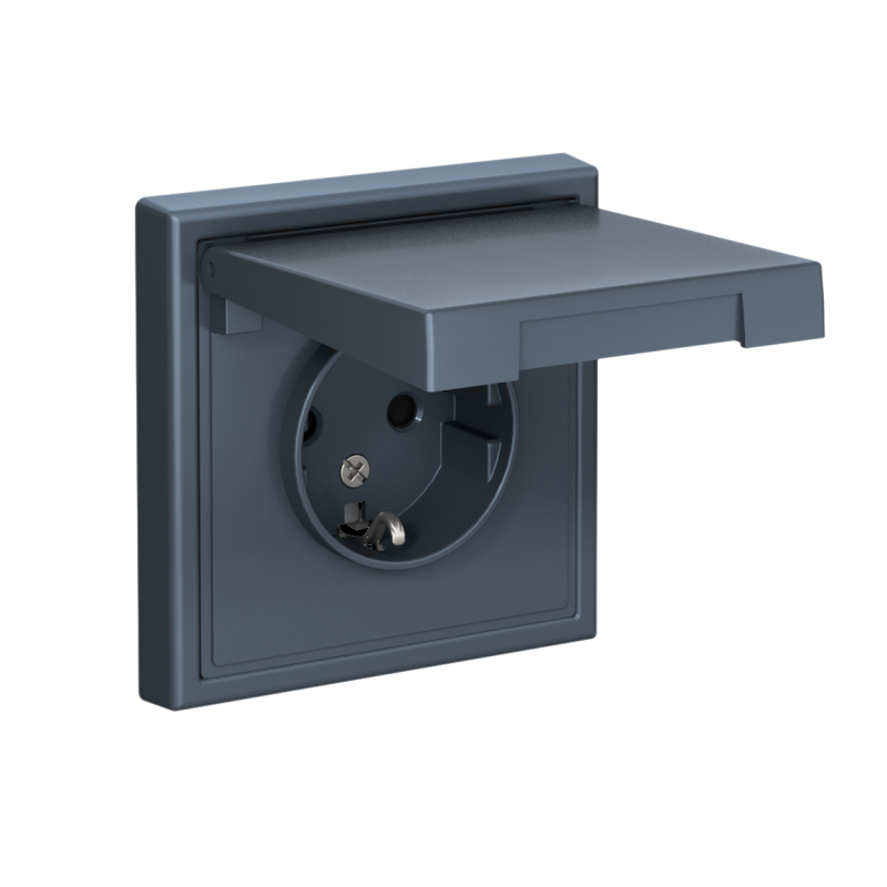 Механизм Systeme Electric серии ArtGallery в цвете грифель розетки одинарной с заземлением, шторками и крышкой подходит для сетей 250 В, на ток 16 А.