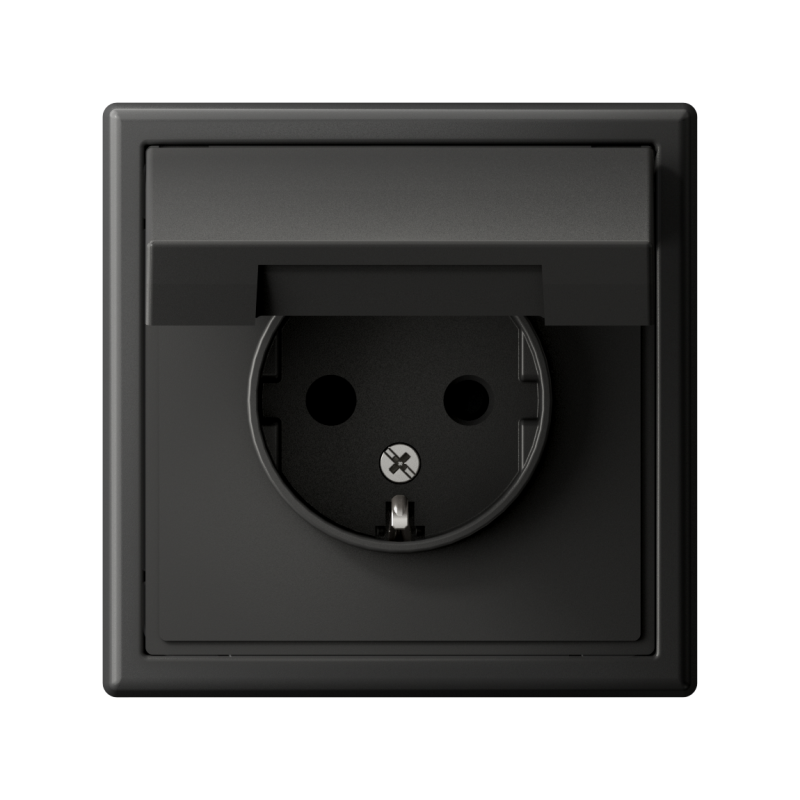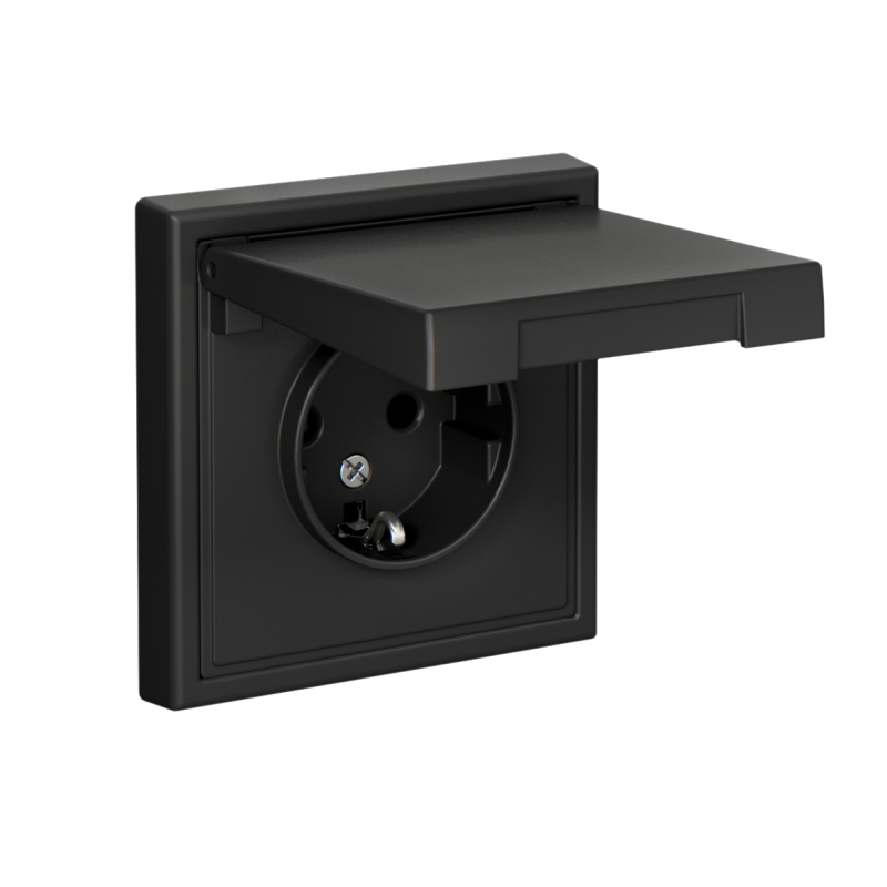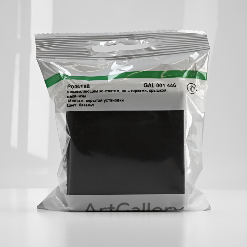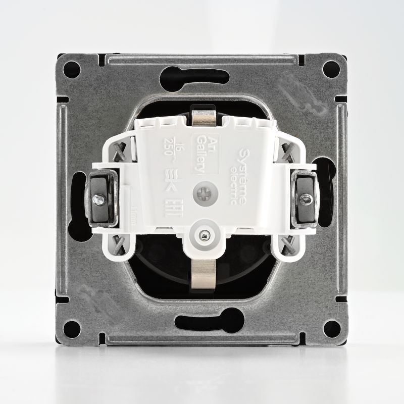 Механизм Systeme Electric серии ArtGallery в цвете базальт розетки одинарной с заземлением, шторками и крышкой подходит для сетей 250 В, на ток 16 А.