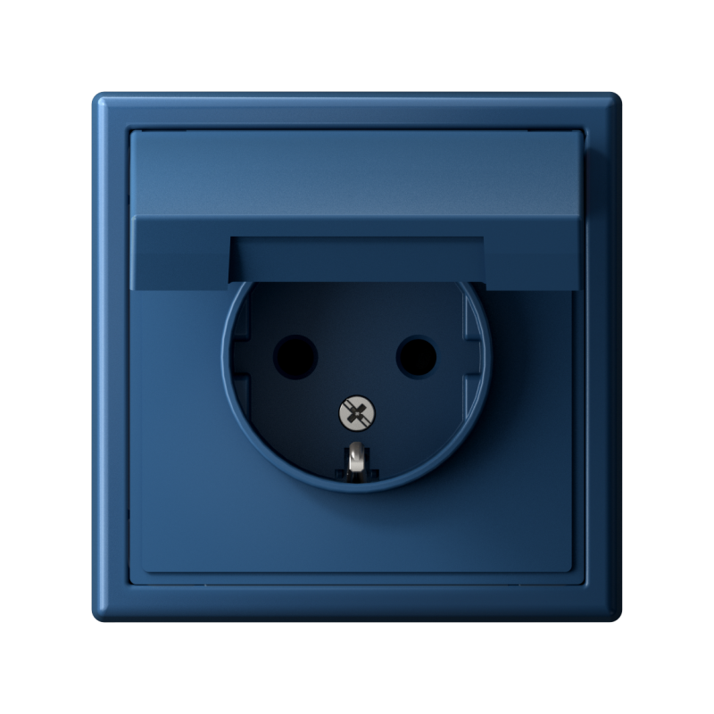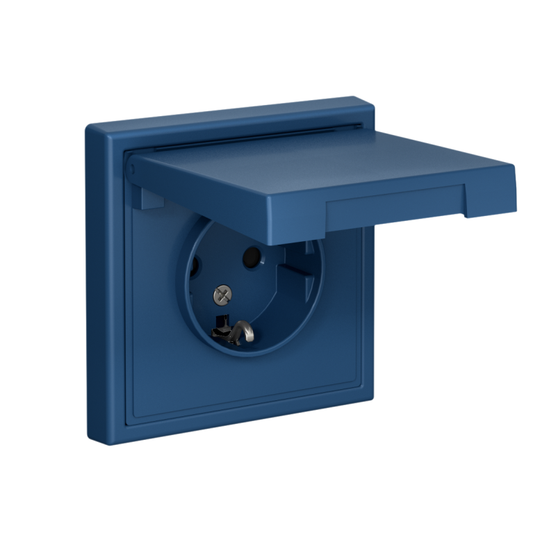 Механизм Systeme Electric серии ArtGallery в цвете аквамарин розетки одинарной с заземлением, шторками и крышкой подходит для сетей 250 В, на ток 16 А.