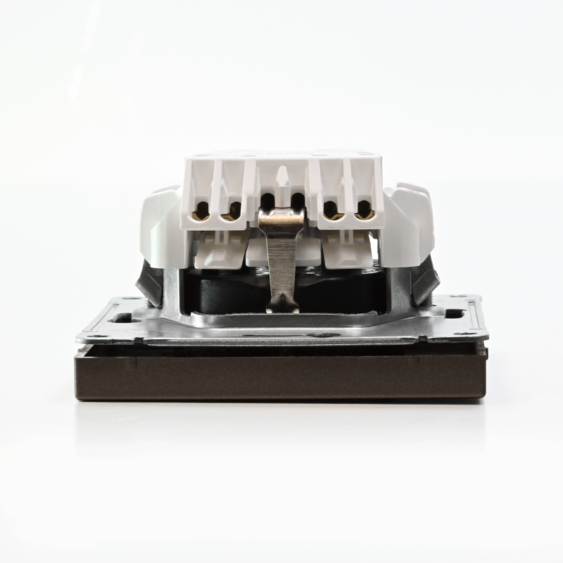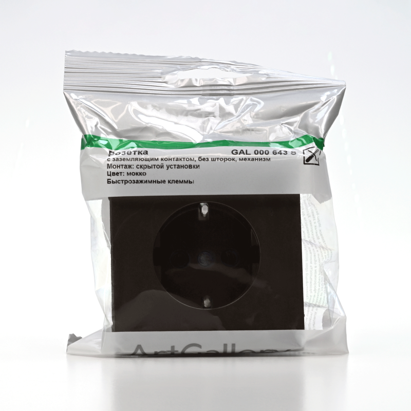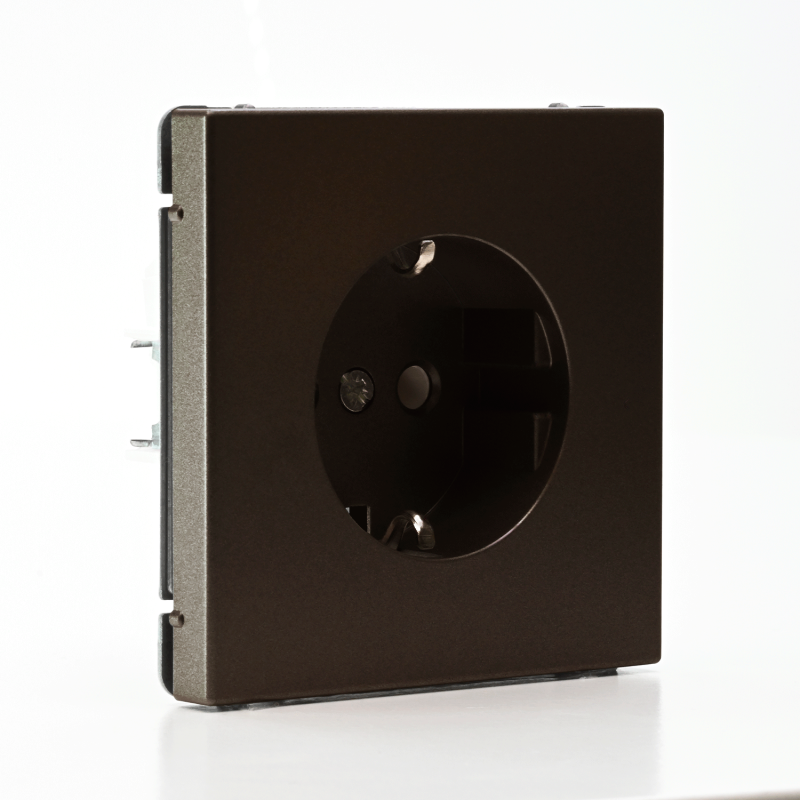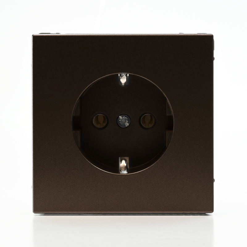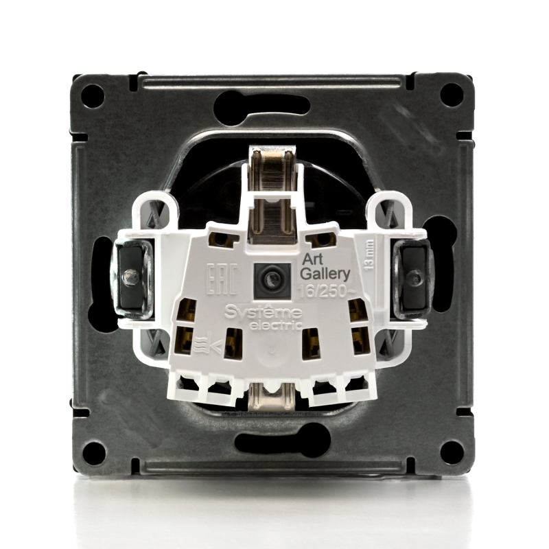 Механизм с быстрозажимными клеммами Systeme Electric серии ArtGallery в цвете мокко розетки одинарной с заземлением и без шторок подходит для сетей 250 В, на ток 16 А.