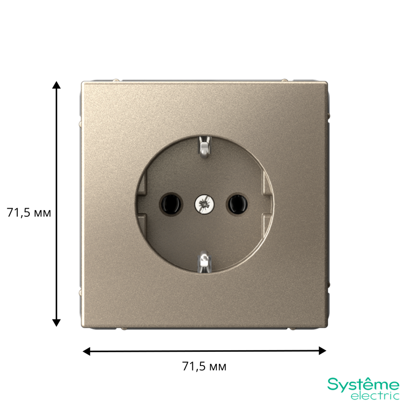 Механизм с быстрозажимными клеммами Systeme Electric серии ArtGallery в цвете шампань розетки одинарной с заземлением и без шторок подходит для сетей 250 В, на ток 16 А.