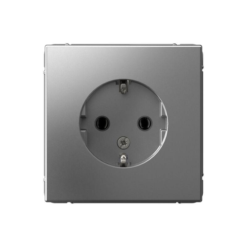Механизм Systeme Electric серии ArtGallery в цвете сталь розетки одинарной с заземлением и без шторок подходит для сетей 250 В, на ток 16 А.