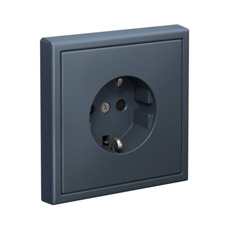 Механизм с быстрозажимными клеммами Systeme Electric серии ArtGallery в цвете грифель розетки одинарной с заземлением и шторками подходит для сетей 250 В, на ток 16 А.