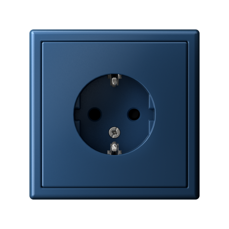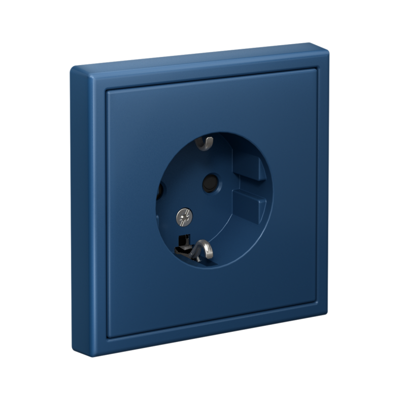 Механизм Systeme Electric серии ArtGallery в цвете аквамарин розетки одинарной с заземлением и шторками подходит для сетей 250 В, на ток 16 А.