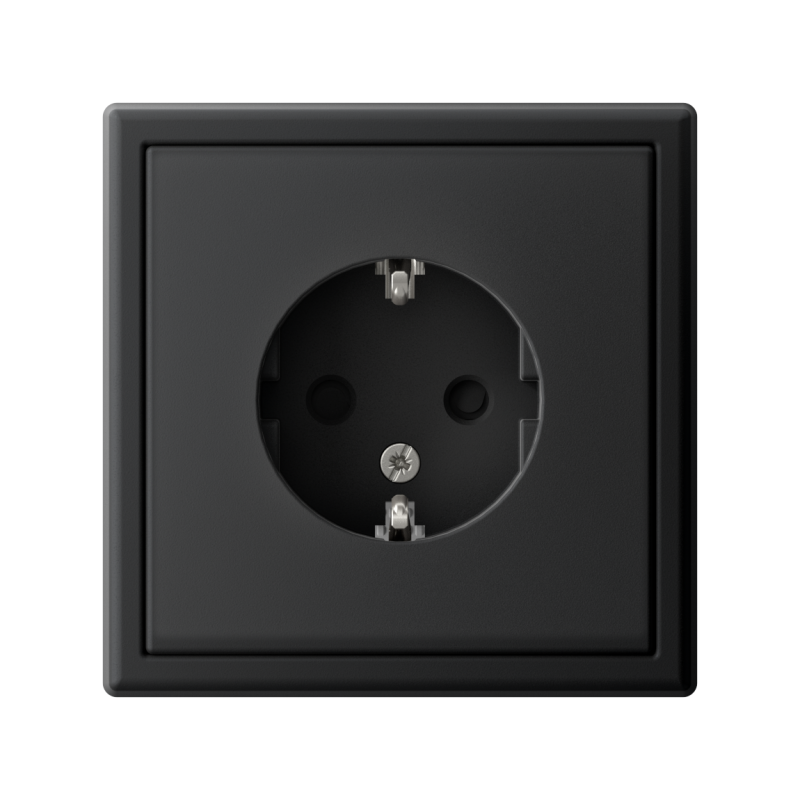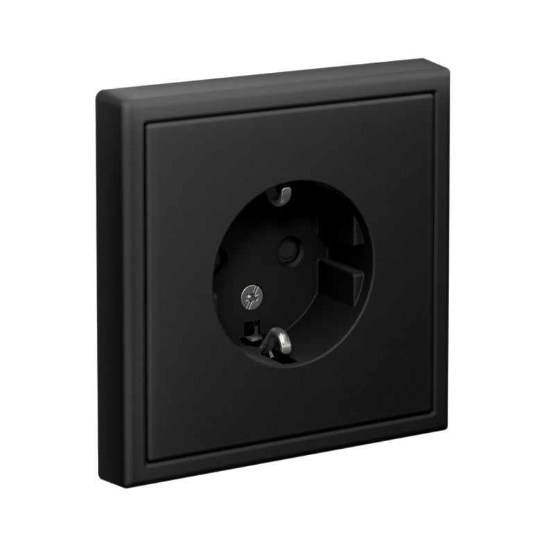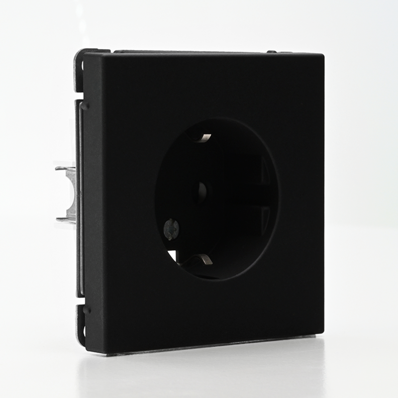 Механизм Systeme Electric серии ArtGallery в цвете карбон розетки одинарной с заземлением и шторками подходит для сетей 250 В, на ток 16 А.