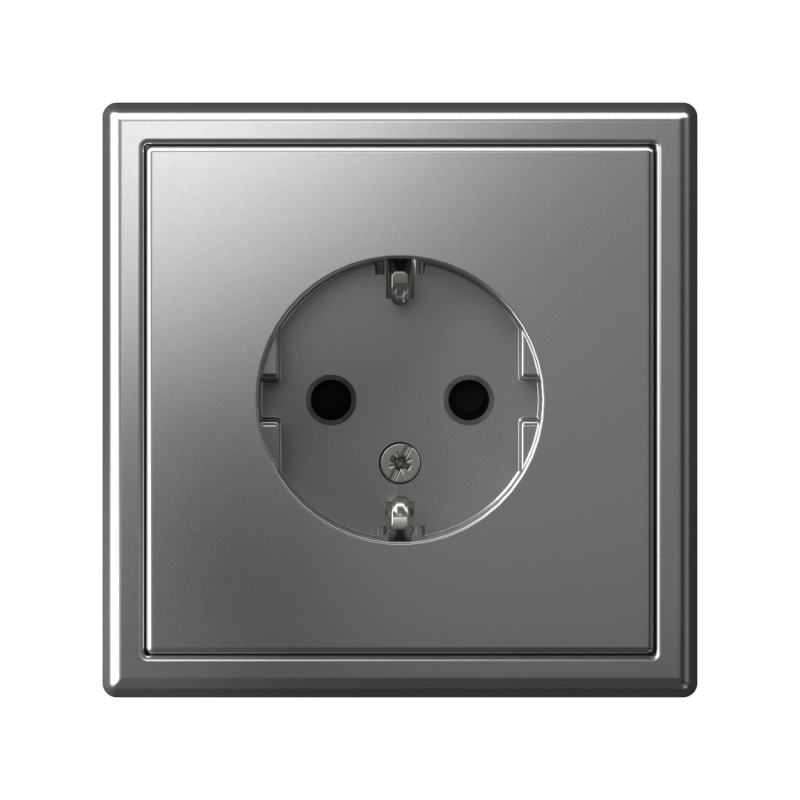 Механизм Systeme Electric серии ArtGallery в цвете сталь розетки одинарной с заземлением и шторками подходит для сетей 250 В, на ток 16 А.