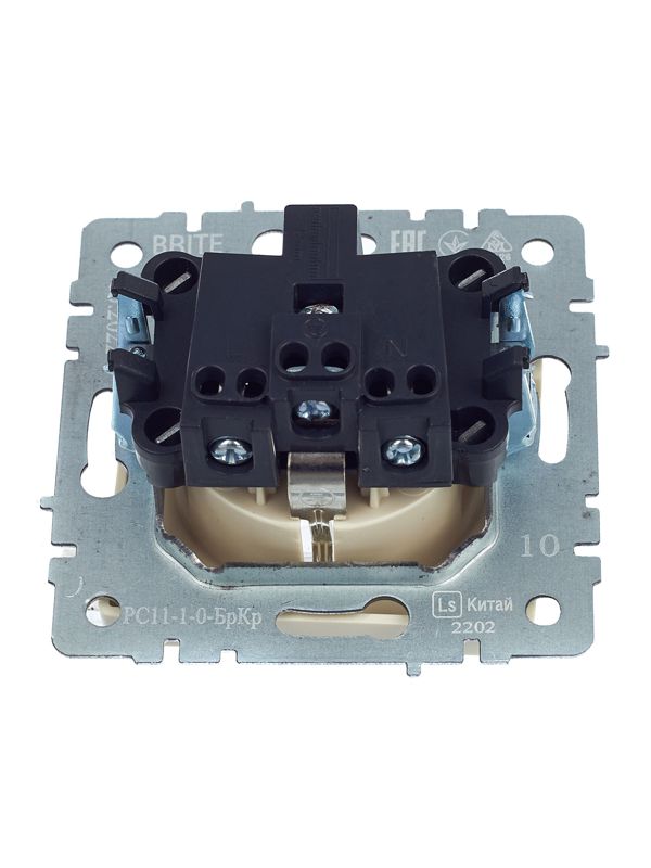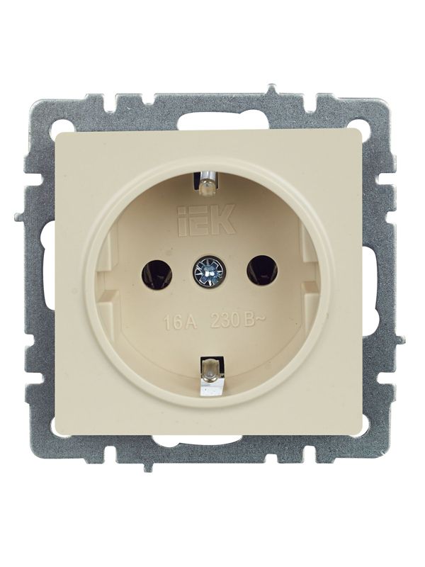 Розетка BRITE РС11-1-0-БрКр 16А с заземл. без защ. шторки беж. IEK BR-R11-16-K10