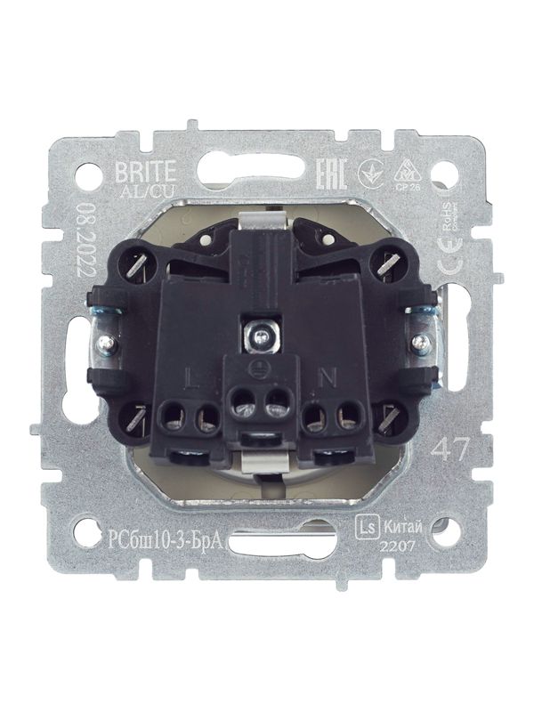 Розетка BRITE РСбш10-3-БрА 16А IP20 с заземл. защ. шторки с крышкой алюм. IEK BR-R16-16-K47 -