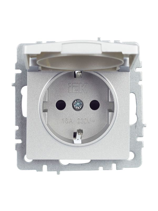 Розетка BRITE РСбш10-3-БрА 16А IP20 с заземл. защ. шторки с крышкой алюм. IEK BR-R16-16-K47
