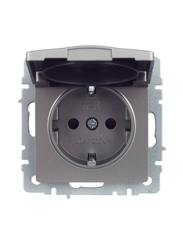 Розетка BRITE РСбш10-3-БрС 16А IP20 с заземл. защ. шторки с крышкой сталь IEK BR-R16-16-K46 -