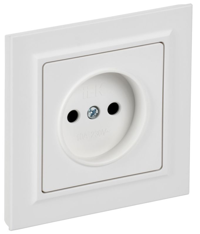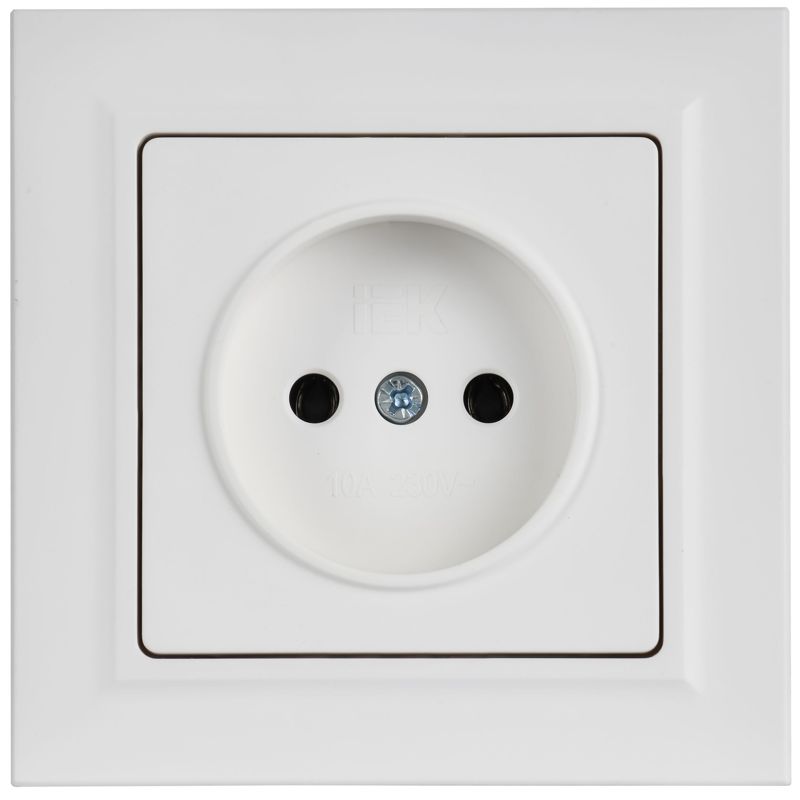 Розетка BRITE РСР10-1-0-БрАБ 10А в сборе без заземл. без защ. шторок арктич. бел. IEK BR-R10-10-K91-F