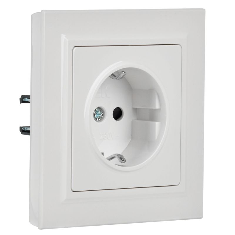 Розетка BRITE РСР14-1-0-БрБ 16А в сборе с заземл. защ. шторки бел. IEK BR-R14-16-K01-F