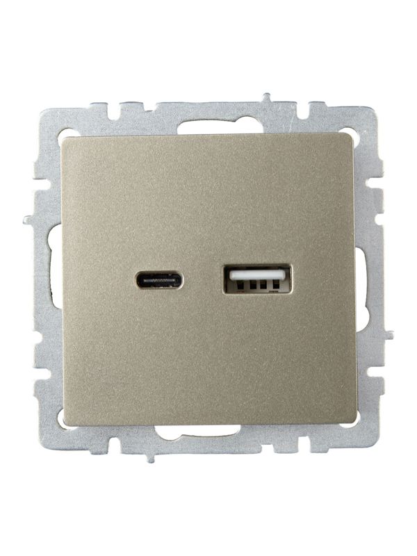 Розетка BRITE USB A+C 18Вт РЮ11-1-БрШ шампань IEK BR-U22-018-K37
