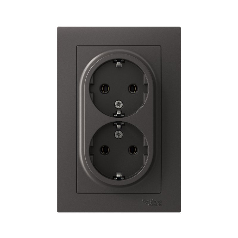 Розетка двойная в сборе Systeme Electric (ранее Schneider Electric) серии AtlasDesign в цвете базальт с заземлением, без шторок подходит для сетей 250 В, на ток 16 А. Заземляющий контакт обеспечивает дополнительную защиту от удара электрическим током. Лицевые детали из качественного ABS-пластика, устойчивого к царапинам и УФ-излучению. Двойная розетка позволяет подключить два устройства в одном месте. Изделие поставляется в комплекте с рамкой того же цвета.