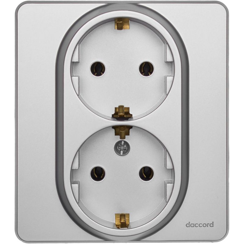Розетка двойная с заземлением для скрытого монтажа Inspiria, цвет "Алюминий", максимальный ток 16А, напряжение ~250В, максимальная мощность 3680Вт, винтовые зажимы. Применяется для присоединения однофазных электрических потребителей к сети переменного тока в зданиях с проводкой с заземлением (с защитным проводником). Позволяет компактно разместить две розетки в одном установочном месте.