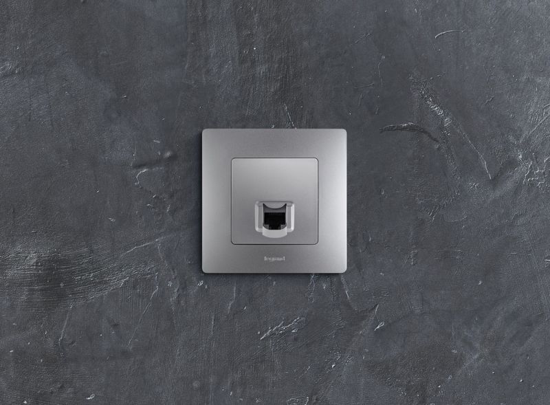 Розетка компьютерная 1-м СП Etika RJ45 кат.5E UTP механизм алюм. Leg 672441 -