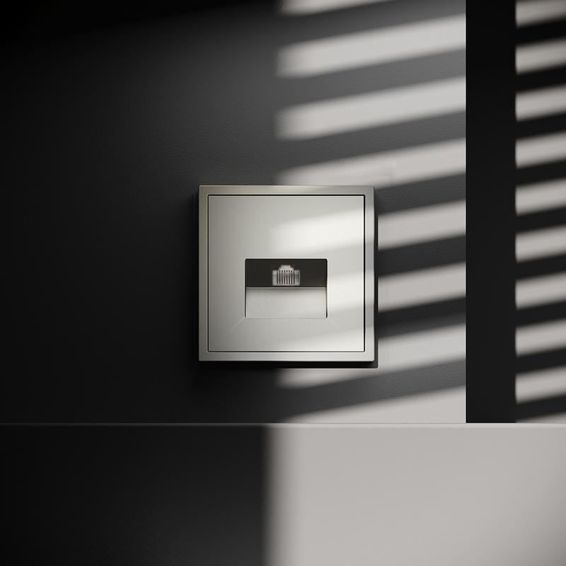 Место установки. Компьютерные розетки применяются в домашних и офисных сетях для подключения персонального компьютера, принтера, роутера или любого другого сетевого устройства к современным информационным системам. Корпус. Розетка выполнена в фирменной стилистике Voltum. Внешние материалы — это поликарбонат высокой прочности. Устройство оборудовано специальным сетевым разъемом (или сразу двумя у модели RJ45+RJ45). Конструктивные особенности. Компьютерная розетка RJ45 совместима с информационными сетями шестого поколения со скоростью передачи данных до 1000 Мбит/сек. Также она поддерживает стандарт 5e. Подключение к конечному устройству выполняется через сетевой кабель (витую пару)