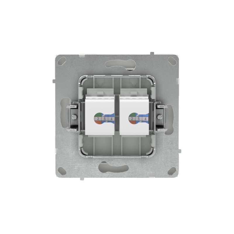 Компьютерная розетка RJ-45 двойная, кат. 5e, применяется для подключения компьютерной техники и соединения с патч-панелью. Компьютерная розетка предназначена для скрытого монтажа в стену, поставляется в комплекте с суппортом. Позволяет организовать сеть с частотой 125 МГц и скоростью до 1000 Мбит/с. Материал: металл, поликарбонат. Пластиковые элементы имеют цвет "Белый песок". Для декоративного оформления электроустановочных изделий используются рамки серии "KANT".