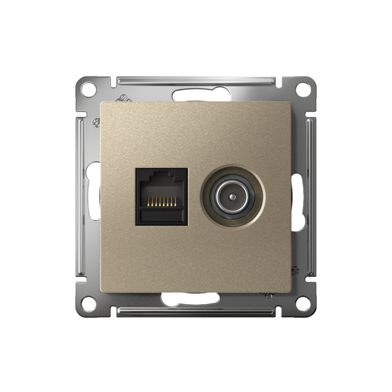 Розетка компьютерная + телевизионная 2-м AtlasDesign RJ45 кат.5E + TV механизм шампань SchE ATN000589