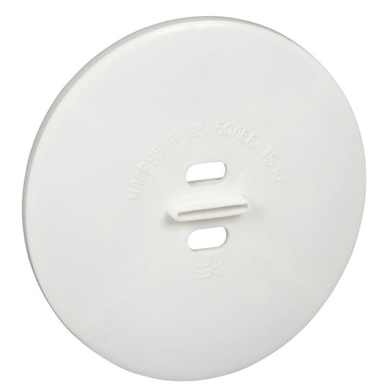 сплошных плит. Имеет отверстие для ввода кабеля. Комплект состоит из крюка, круглой крышки белого цвета и поперечной оси длиной 120 мм. Диаметр крышки 100 мм, максимальная нагрузка 15 кг.