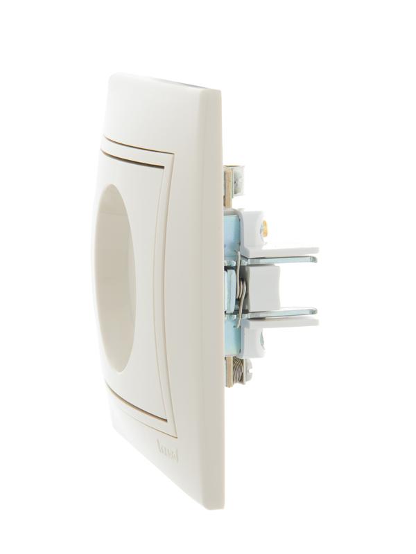 Корпус представляет собой форму из негорючего пластика, кремового цвета. Подпружиненные лапки крепления обеспечивают комфортный и легкий монтаж изделия. Монтируется на поверхность стены. Применяется при подключении TV-кабеля. Рекомендованы для жилых помещений и административных зданий.
